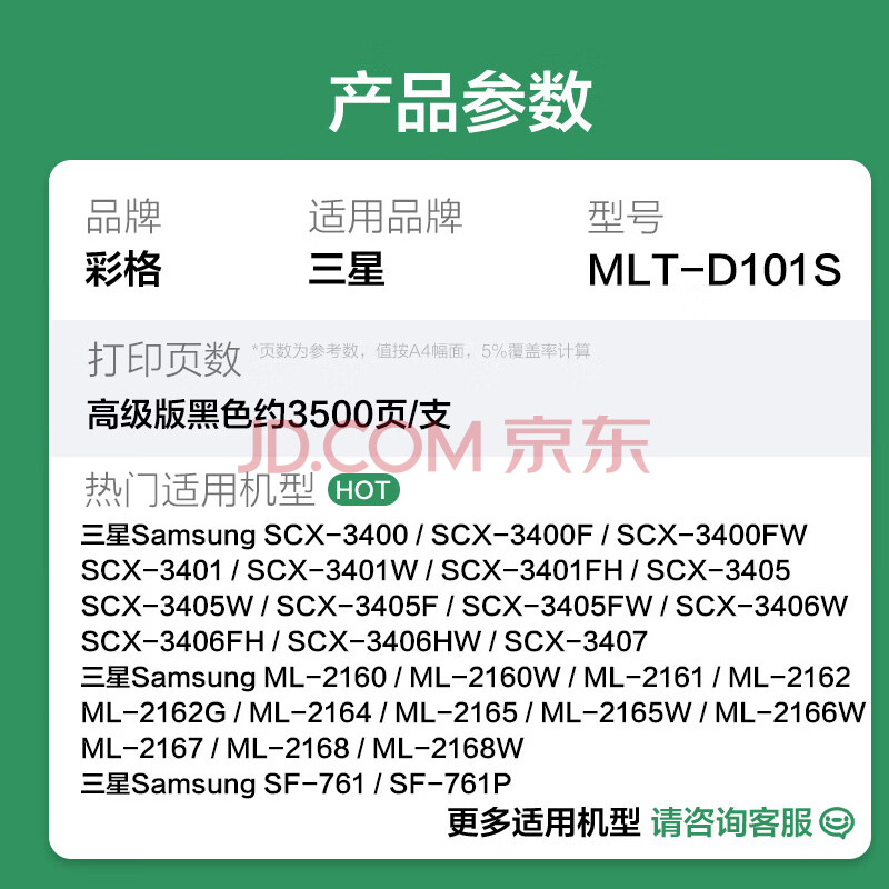 商品相册:彩格MLT-D101S硒鼓大容量1支适用三星SCX-3401 3400 3405 3406碳粉盒ML2161 2162 2164 2165 2166 2160打印机墨盒第
