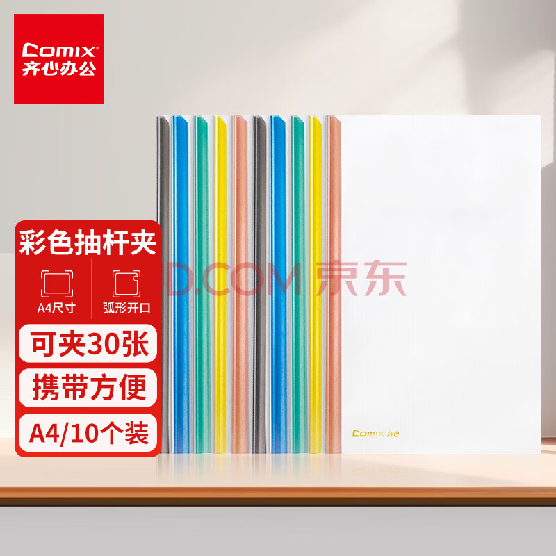 商品相册:齐心(COMIX)彩色水滴抽杆夹10只装A4/7mm/拉杆夹抽杆文件夹透明拉杆文件夹 办公文具EA85第