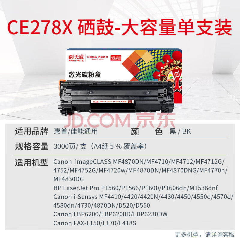 商品相册:天威78a硒鼓CRG328大容量粉盒适用佳能MF LBP6230DN 4712 4752 L150 MFP 惠普HP M1536dnf P1606dn打印机墨盒第