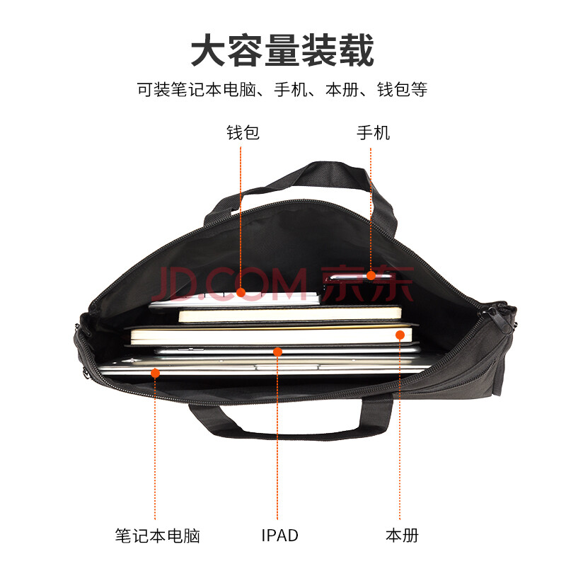 商品相册:得力(deli)(deli)大容量双层事务包/文件包/拉链袋 底部可调宽度 手提袋会议包公文包男 便携 P05500黑第
