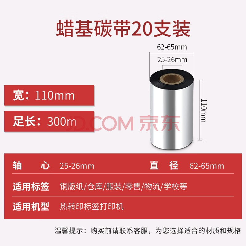 商品相册:得印(befon)002碳带20支装 110mm*300m单轴碳带蜡基碳带 条码打印机专用色带 热转印标签打印机通用碳带第