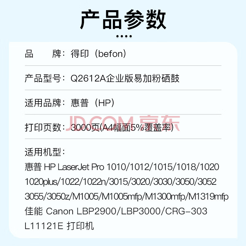 商品相册:得印q2612a 12a硒鼓大适用惠普1020硒鼓hp m1005 1020plus 1010 1018佳能lbp2900 利普生M1005NW打印机墨盒粉盒第