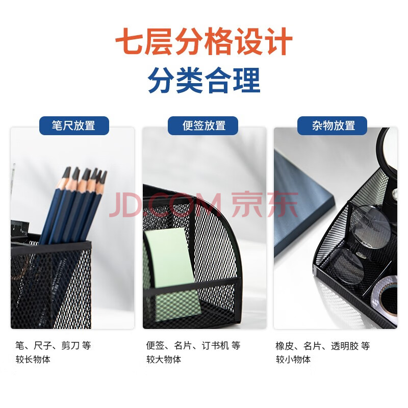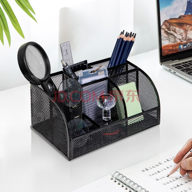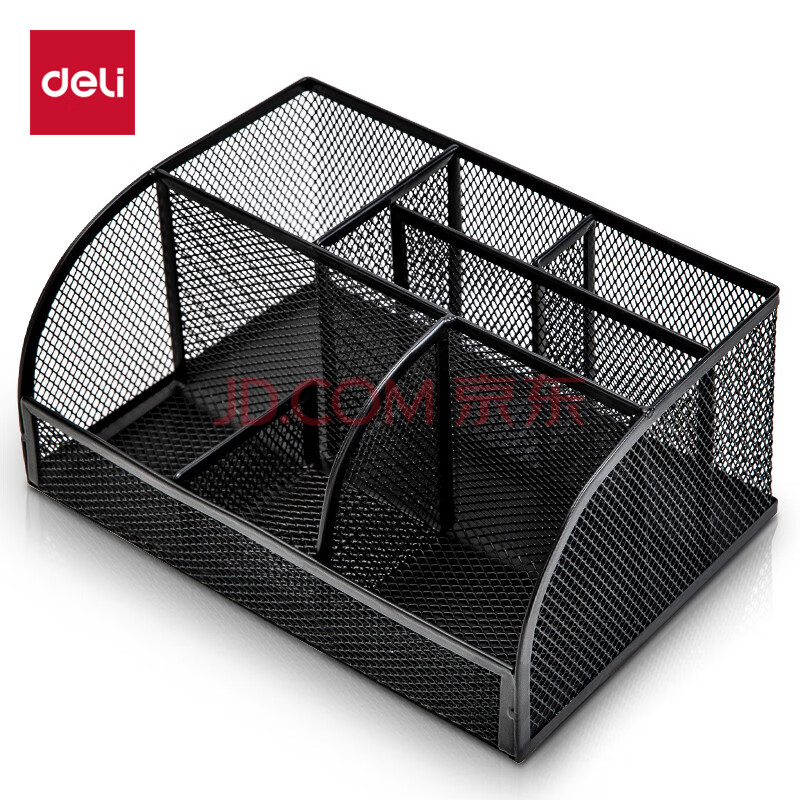 商品相册:得力(deli)多功能七格组合笔筒 金属网纹桌面收纳盒 办公用品 黑色8903第