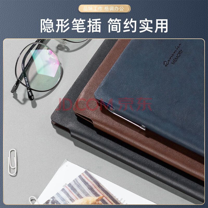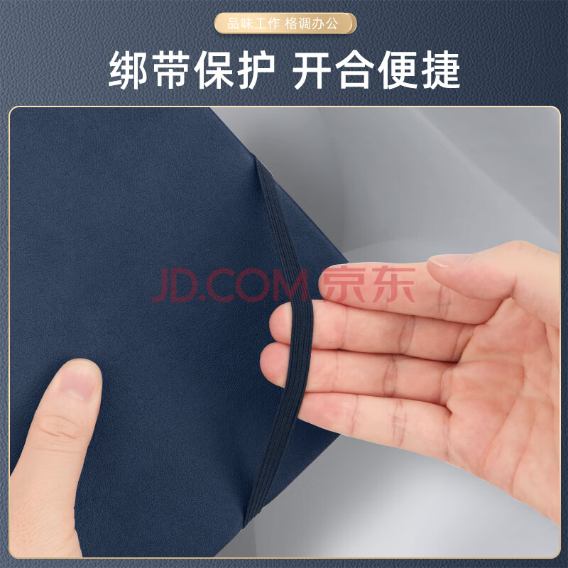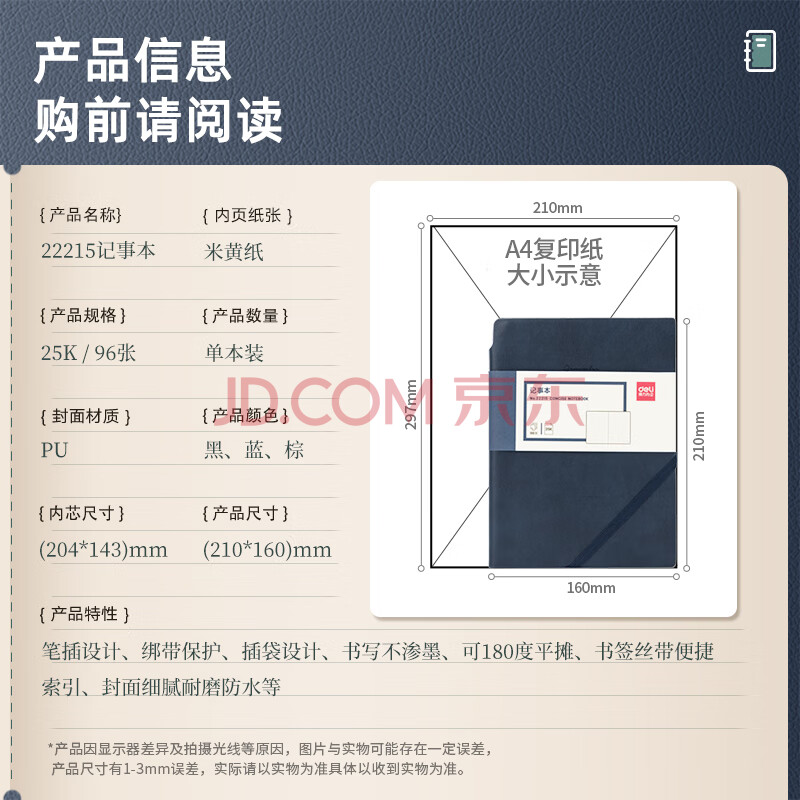商品相册:得力可定制皮面本25K96张笔记本可插笔记事本绑带工作本子日记本文具办公用品22215深蓝第