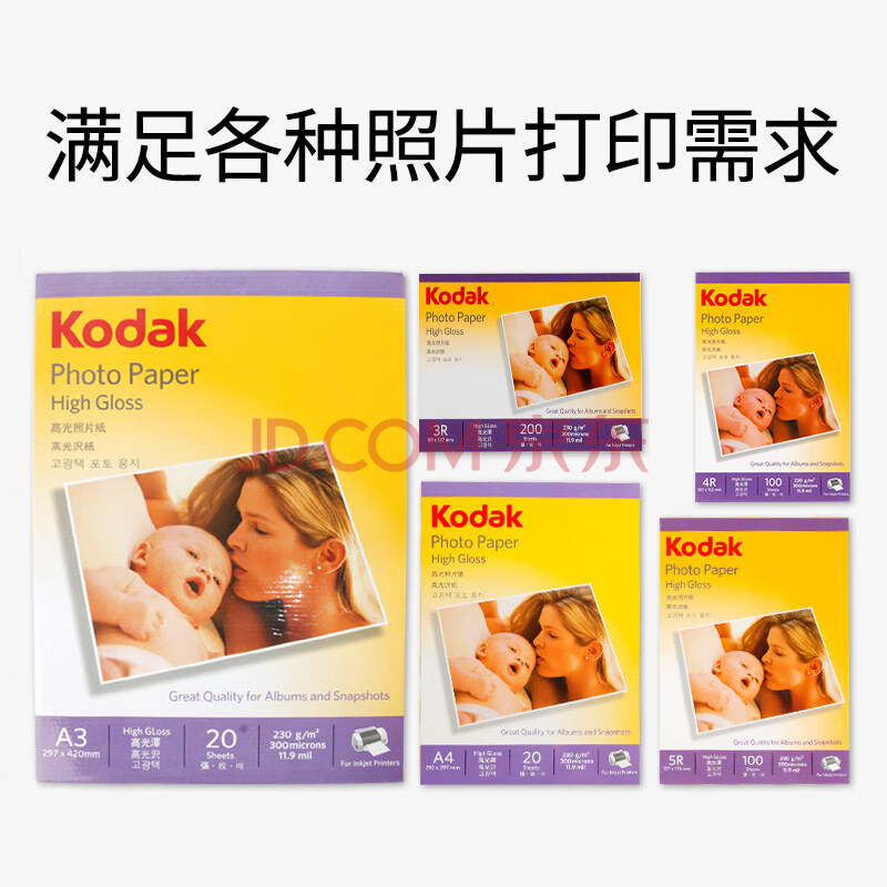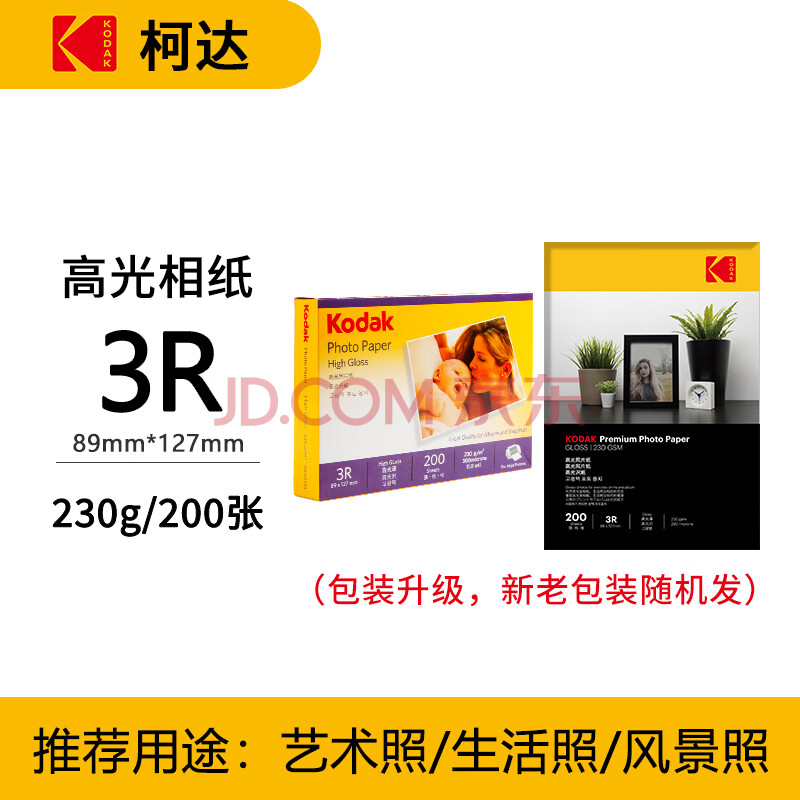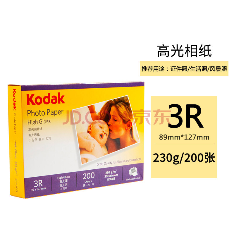 商品相册:KODAK柯达 3R/5英寸 230g高光面照片纸/喷墨打印相片纸/相纸 200张装 5740-317第