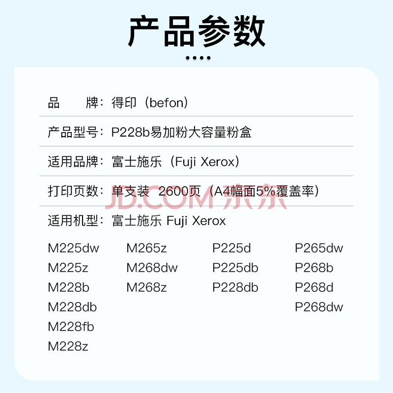 商品相册:得印P228大容量易加粉墨粉盒P228b CT202332 适用富士施乐 m228b m228z p268dw p268b p228db打印机第