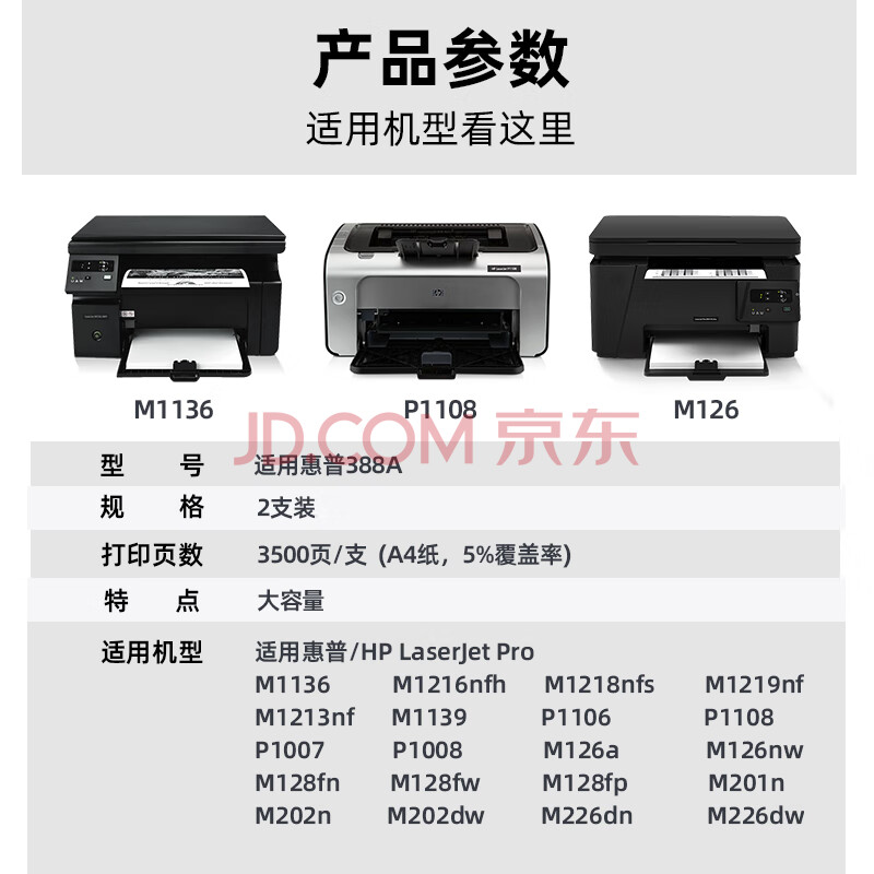 商品相册:V4INK m1136硒鼓388a硒鼓2支装(适用惠普hp 88a硒鼓p1108打印机硒鼓m126a p1106 m1216nfh)第