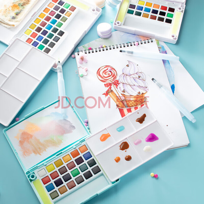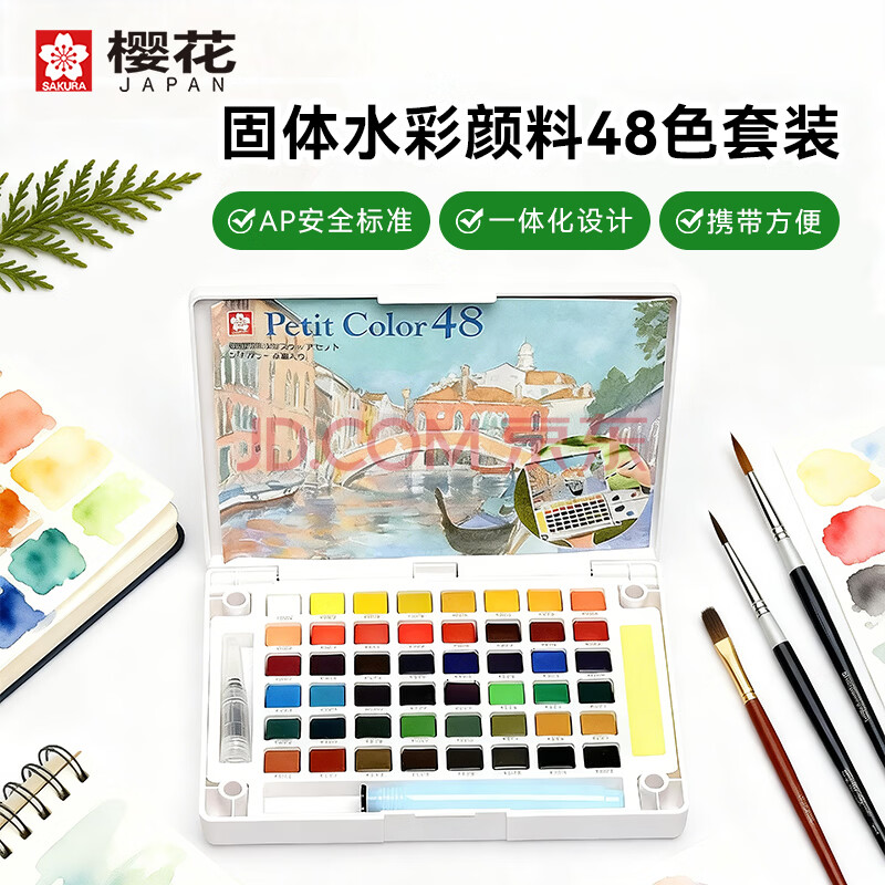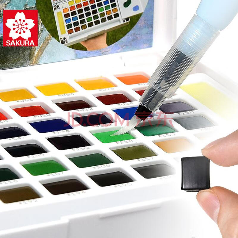 商品相册:樱花(SAKURA)固体水彩颜料48色套装初学者便携透明水彩画工具学生艺考写生美术绘画速写用品出游礼物第