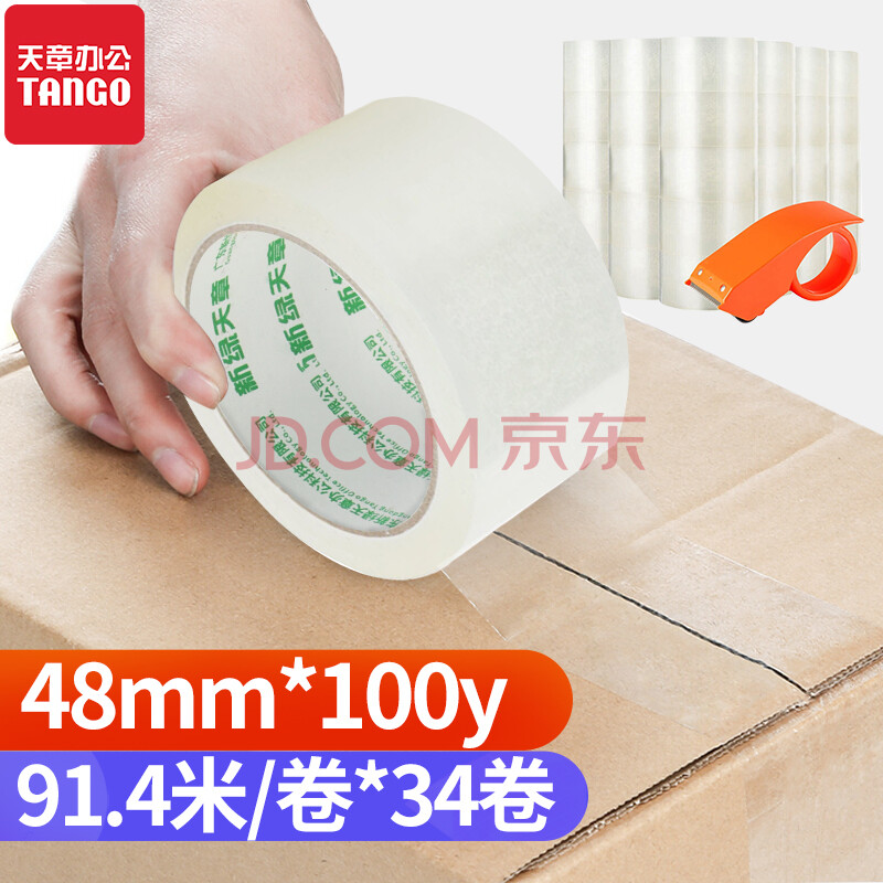 商品相册:天章 (TANGO)透明胶带48mm*100y(91.4米)*45um 34卷+1个封箱器高透高粘工厂仓库快递搬打包车间企业用宽胶带第