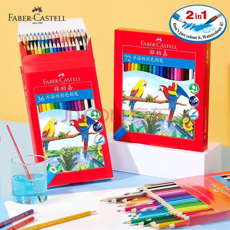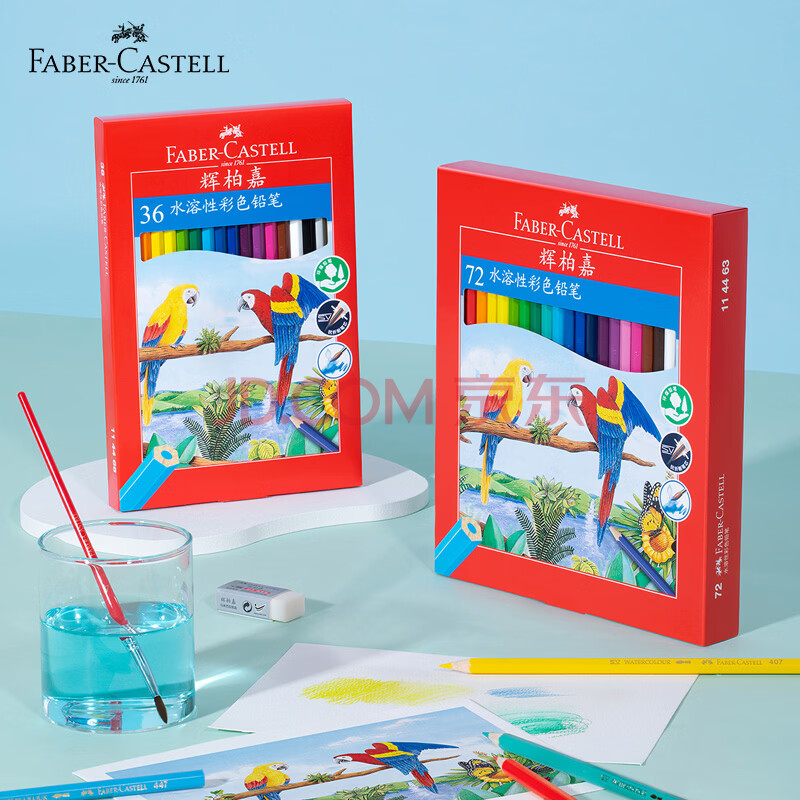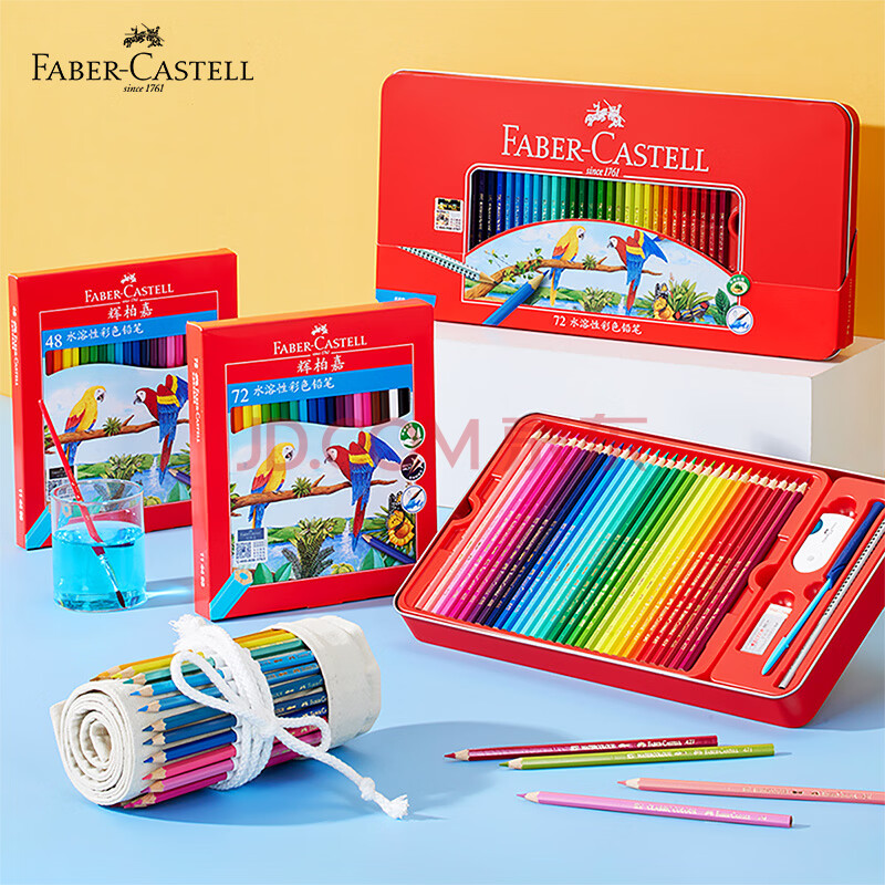 商品相册:辉柏嘉(Faber-castell)水溶性彩铅笔彩色铅笔72色涂色填色彩笔绘画笔套装114463(配毛笔+笔刨+橡皮)开学礼物第