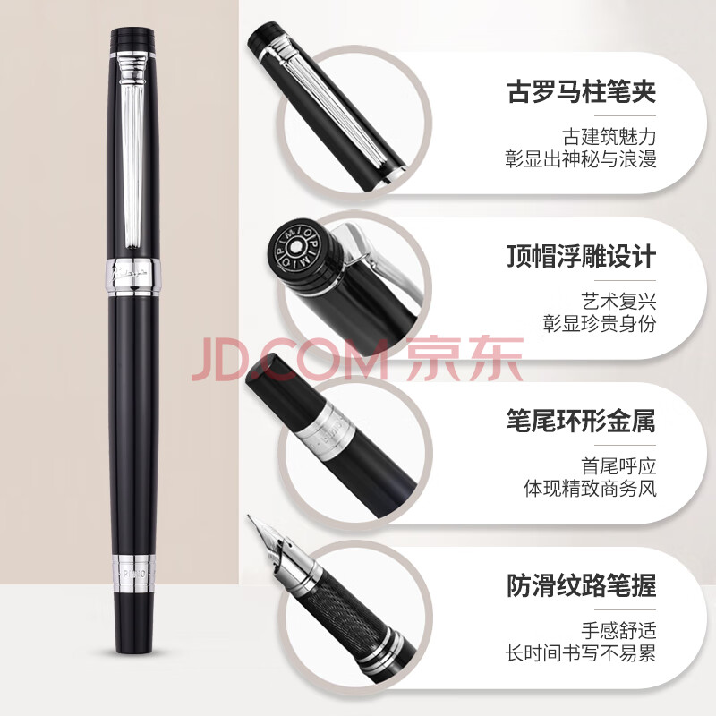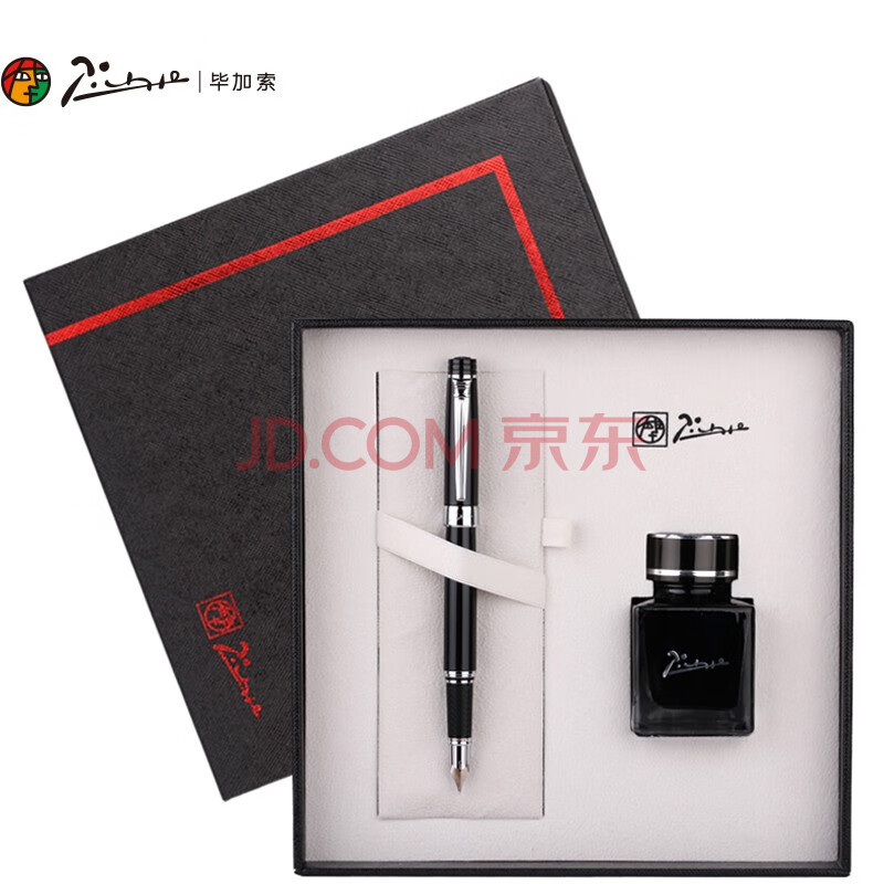 商品相册:毕加索(pimio)钢笔礼盒签字笔墨水套装高端商务礼品成人开学礼物男女学生练字5505亮黑银夹第
