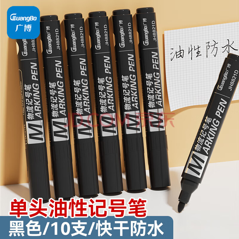 商品相册:广博油性记号笔黑色大头笔粗头马克笔 物流快递包裹仓库专用 海报签到笔 办公用品10支/盒JH8821D第