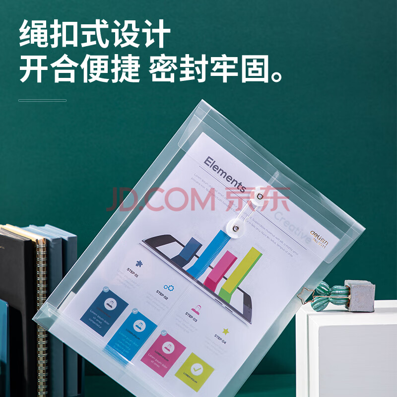商品相册:得力(deli)12只A4加厚防水透明文件袋/资料袋/绕绳档案袋/绑带式合同档案票据试卷收纳保护袋学科分类 办公第