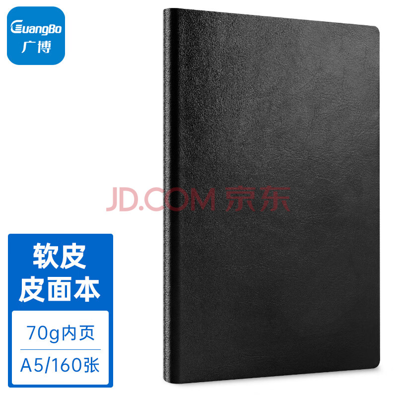 商品相册:广博(GuangBo)A5笔记本子商务简约记事本加大软皮皮面本日记本办公文具会议本记录本160张黑色GBP25888第