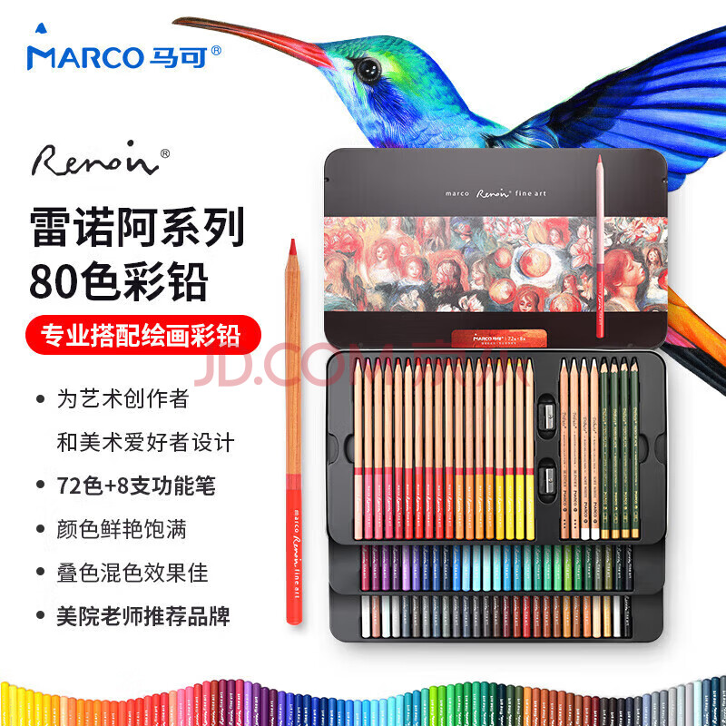 商品相册:马可(MARCO)80色油性彩铅美术生专用 雷诺阿系列铁盒开学生日礼物儿童男女孩学生画风筝出游相纸涂鸦彩色铅笔第
