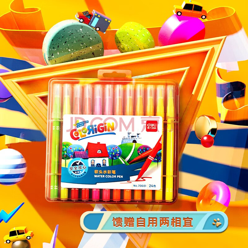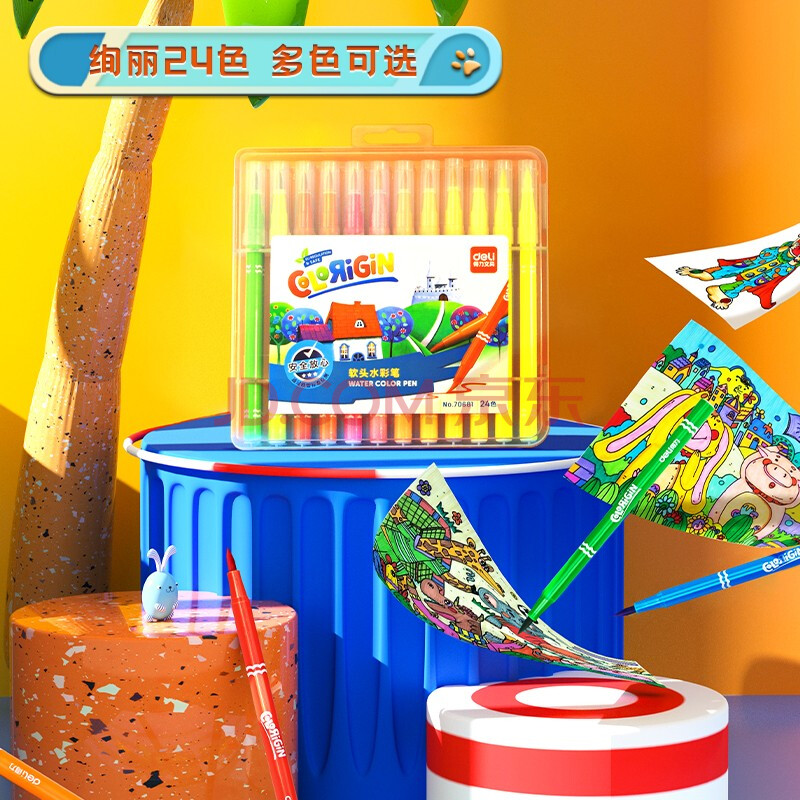 商品相册:得力(deli)24色软头水彩笔勾线漫画插画水性笔涂色学生儿童绘画美术水彩笔第