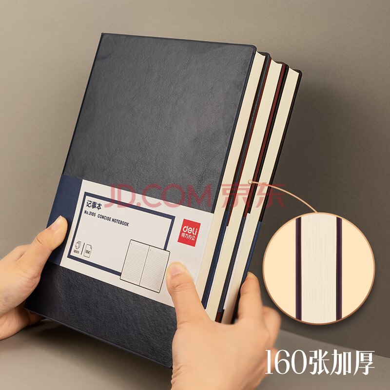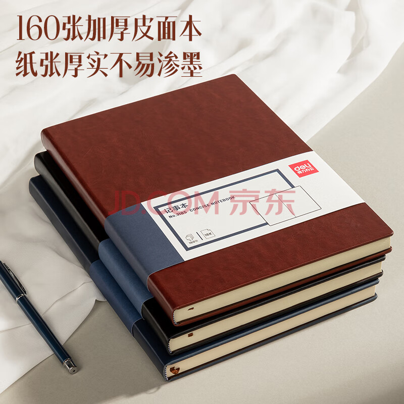 商品相册:得力(deli)可定制皮面本16K160张笔记本加厚商务办公用品会议记事本日记本子 棕色3185第