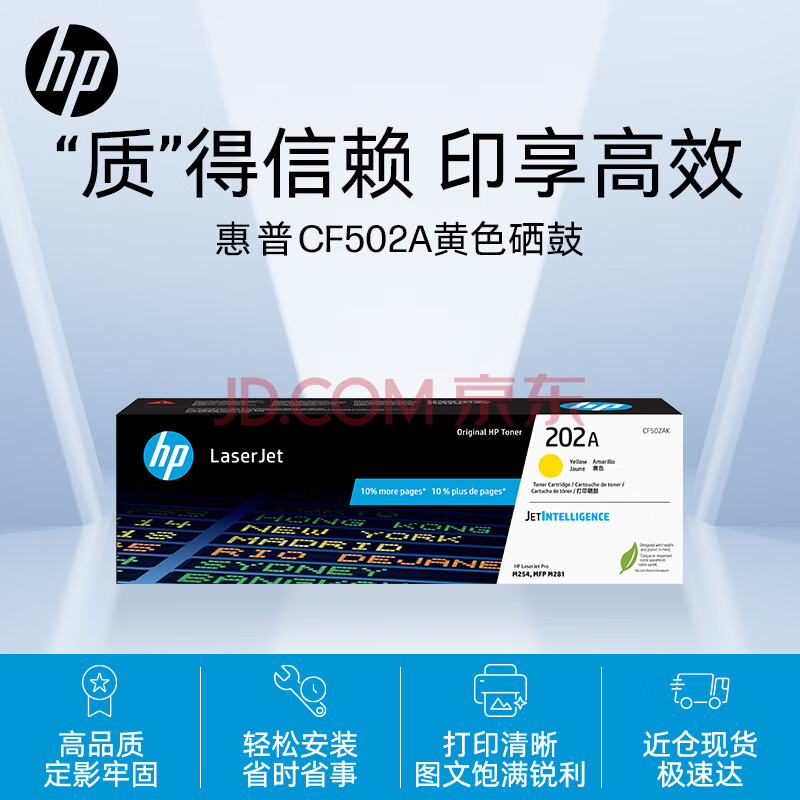 商品相册:惠普(HP)CF502A/202A原装黄色硒鼓 适用hp m281fdw/254dw/254NW/280NW/281FDN 打印机硒鼓第