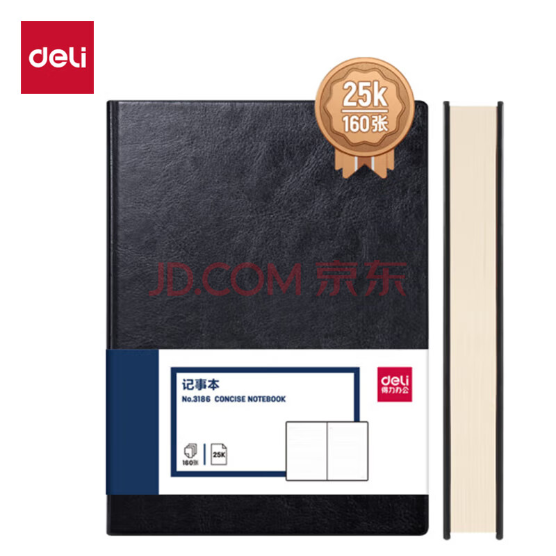 商品相册:得力(deli)可定制皮面本25K160张笔记本加厚商务会议本子记事本日记本3186黑色第