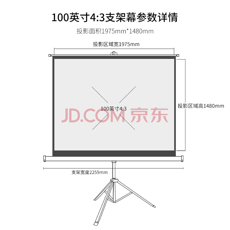 商品相册:快朵小屋100英寸4:3白塑支架幕布投影仪幕布家用办公投影机幕布抗光幕布移动便携幕布极米坚果当贝爱普生第