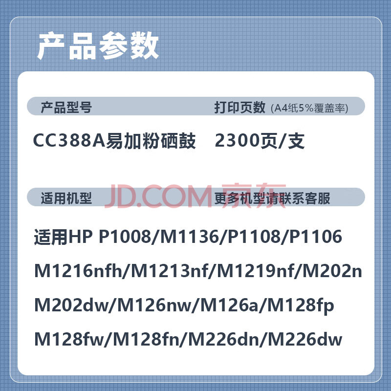 商品相册:映美佳cc388a硒鼓易加粉88a单支装(适用惠普m1136硒鼓p1108 1106 m126a m226dw m1216 m1213nf m128fn 388a)第