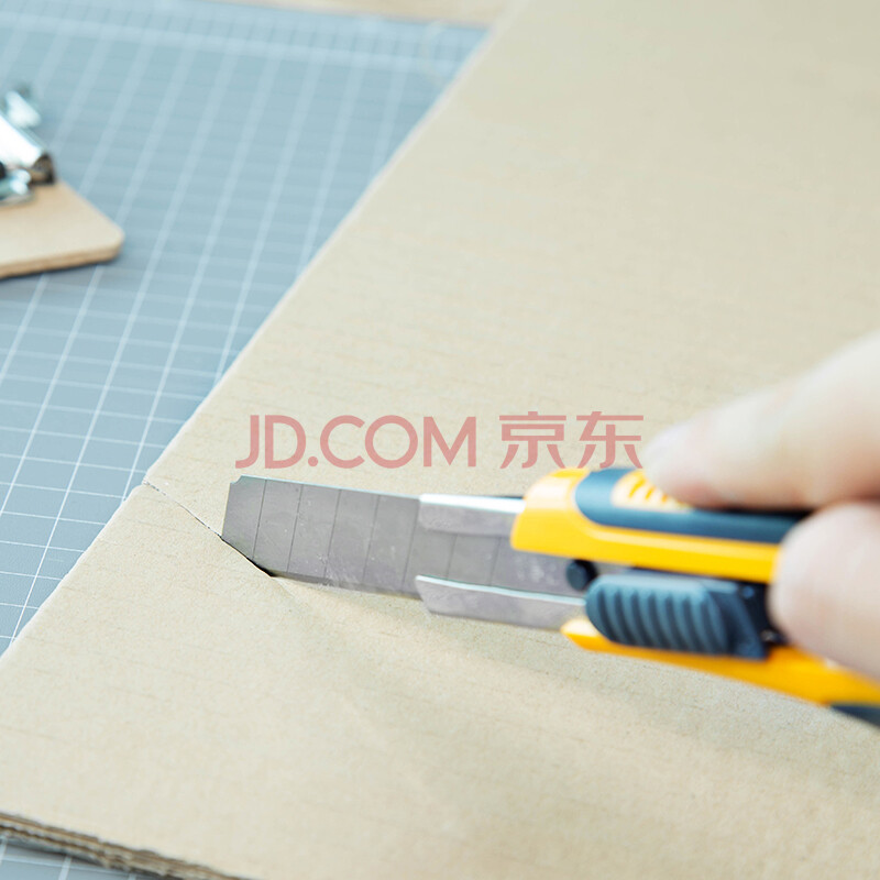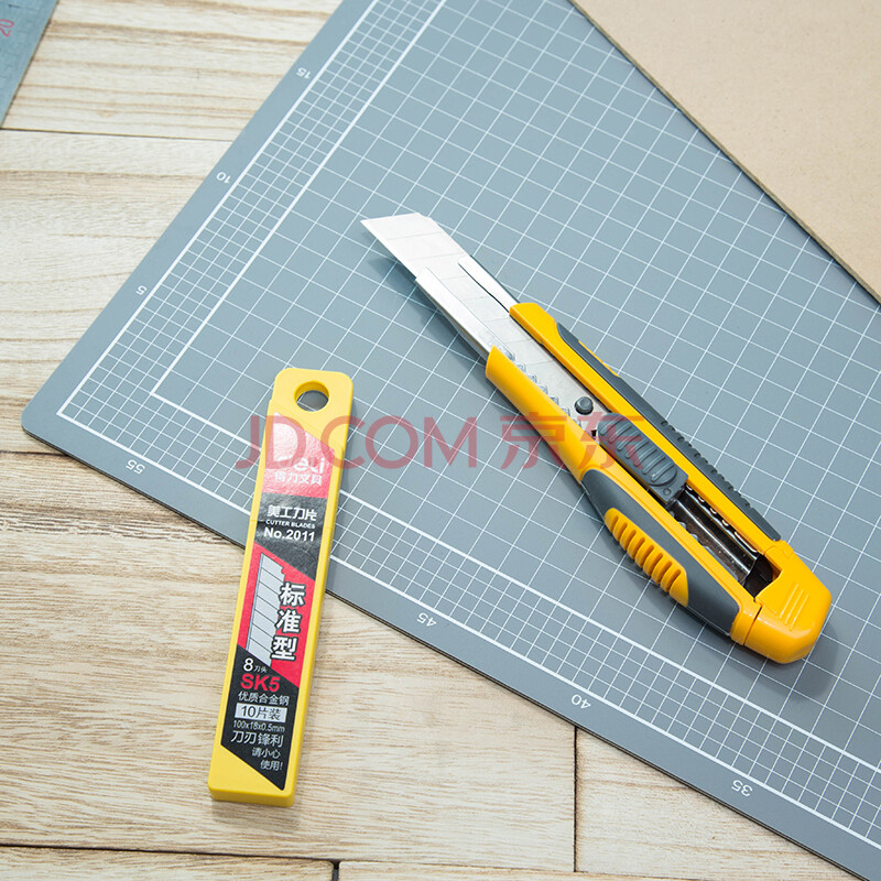 商品相册:得力(deli)大号耐用美工刀套装 自动锁定功能裁纸刀/小刀套装 美工刀1把 10片美工刀片 办公用品 33417第