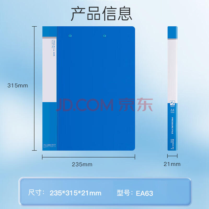 商品相册:齐心(COMIX)10只A4双强力夹文件夹金属压力夹加厚诗朗诵签约夹板试卷资料夹子合同票据收纳办公学习用品EA63蓝第