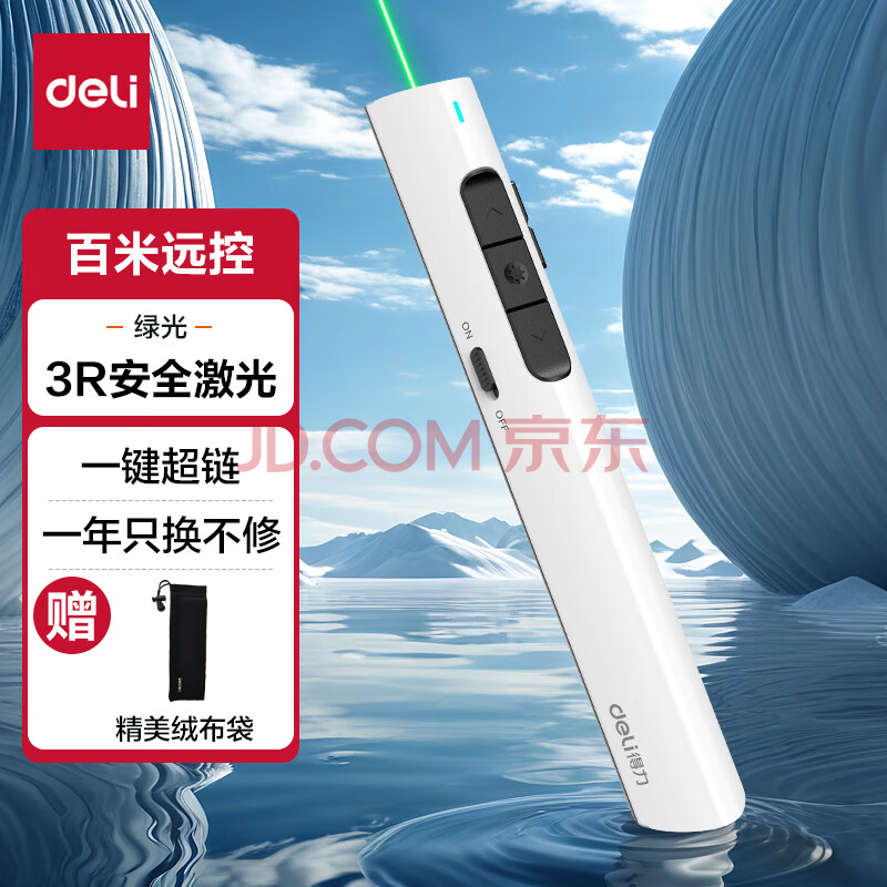 商品相册:得力(deli)激光笔 绿光 可充电教鞭 ppt幻灯片激光翻页笔 演讲笔无线激光演示笔翻页器 白色 2801G第