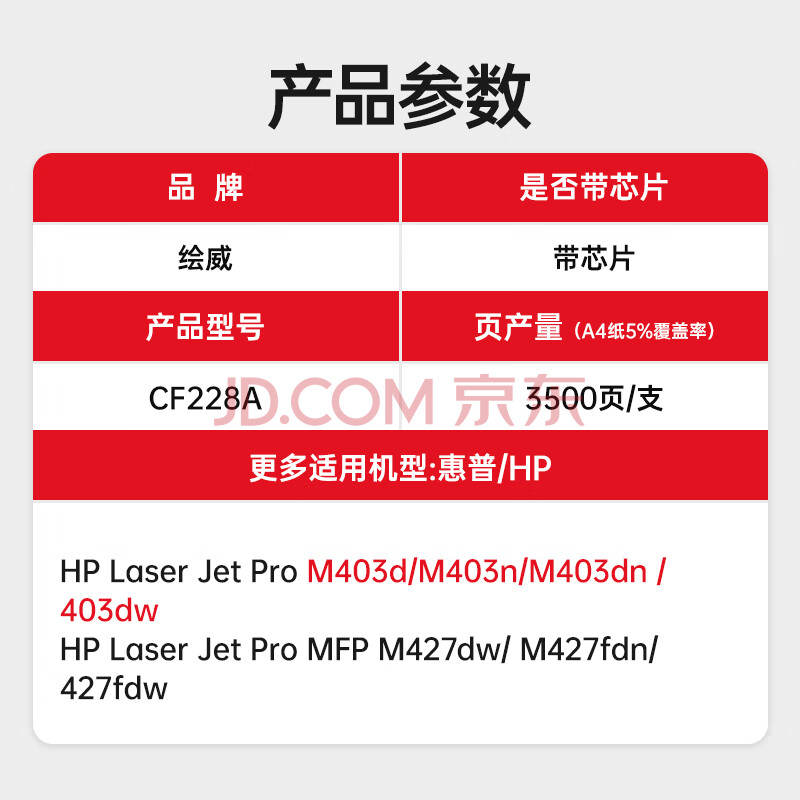 商品相册:绘威228a硒鼓 适用惠普403d硒鼓hp m403dn m403dw m403n m427dw硒鼓 m427fdn m427fdw打印机墨盒 cf228a硒鼓第