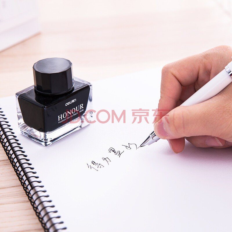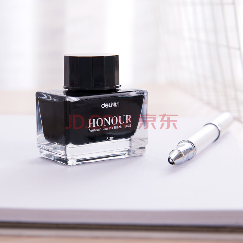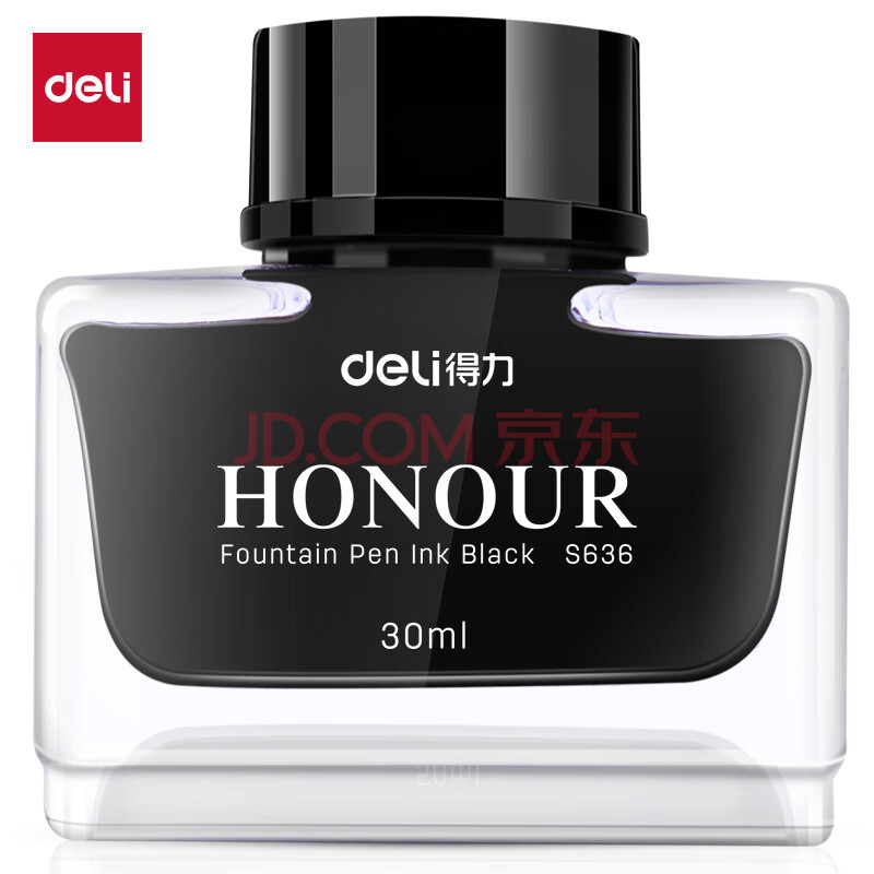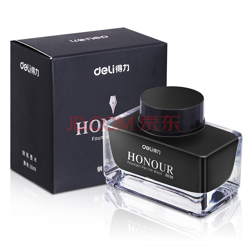 商品相册:得力(deli)钢笔墨水非碳素不堵笔 学生练字商务办公30ml黑色瓶装 S636第