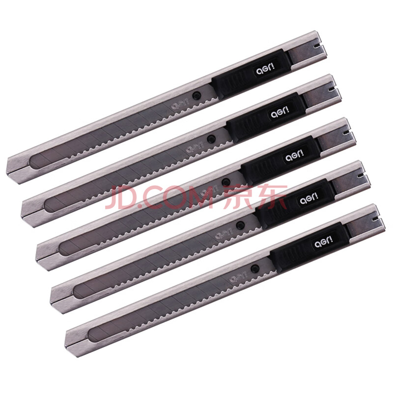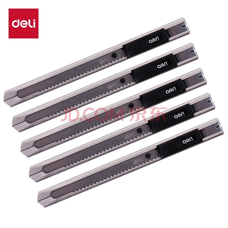 商品相册:得力(deli)5把金属小号美工刀 自动锁裁纸刀小刀 办公用品 银色 P02058-05第