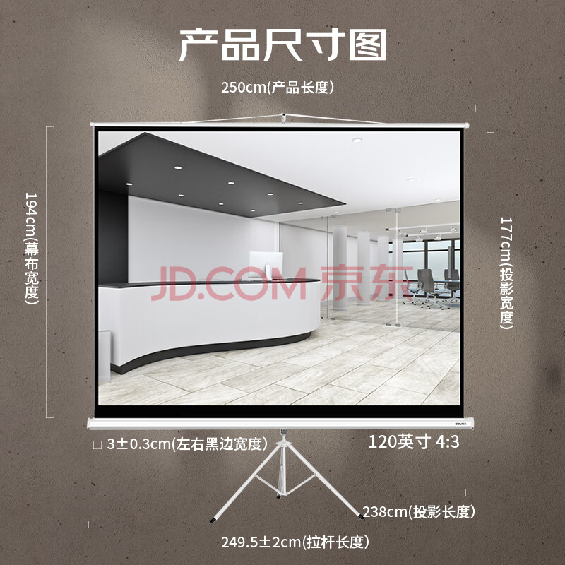 商品相册:得力(deli)120英寸 4:3支架投影幕布投影布半自动收卷 适配坚果极米当贝小米投影机 投影机投影仪幕布50494第
