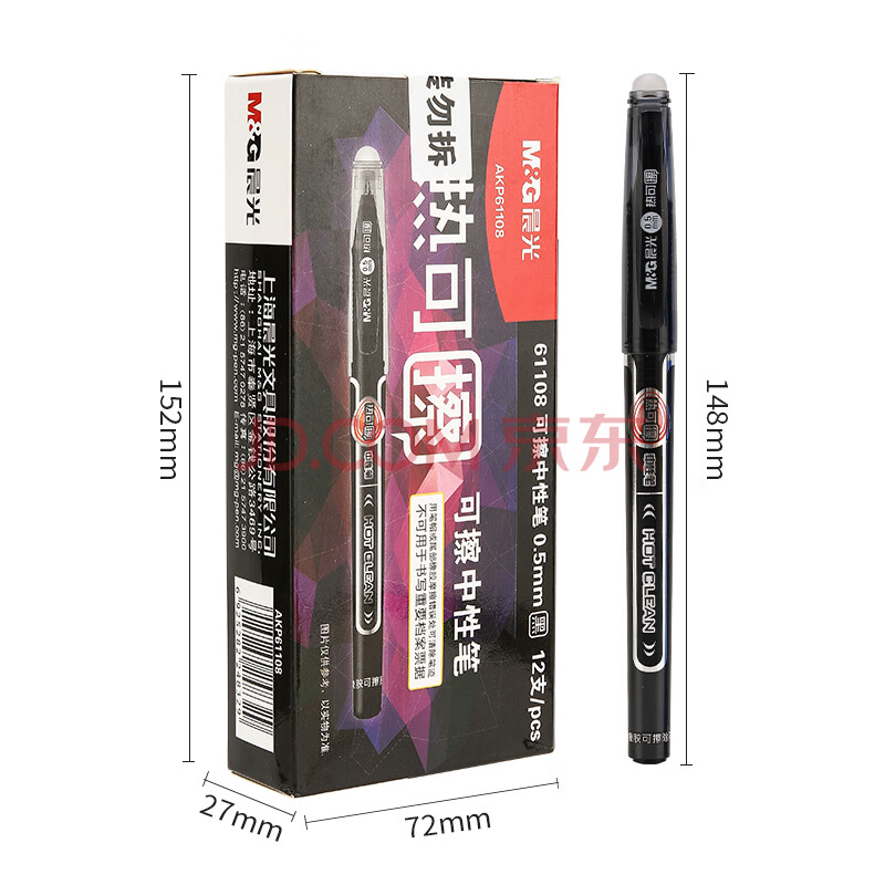 商品相册:晨光(M&G)(M&G)文具 热可擦中性笔 经典拔盖子弹头黑色水笔0.5mm 小学生用热敏摩擦签字笔 12支/盒AKP61108A第