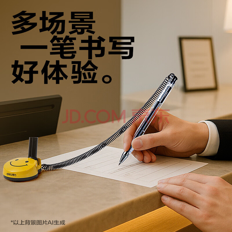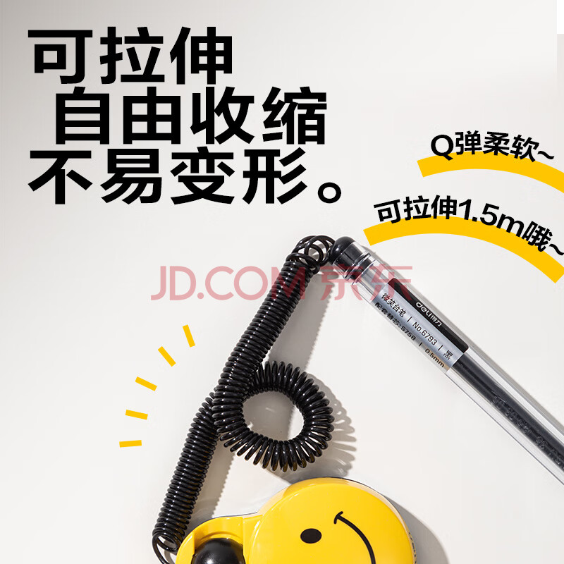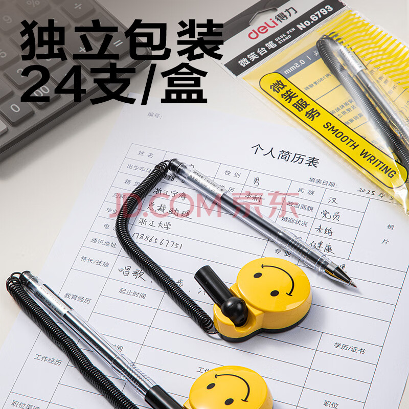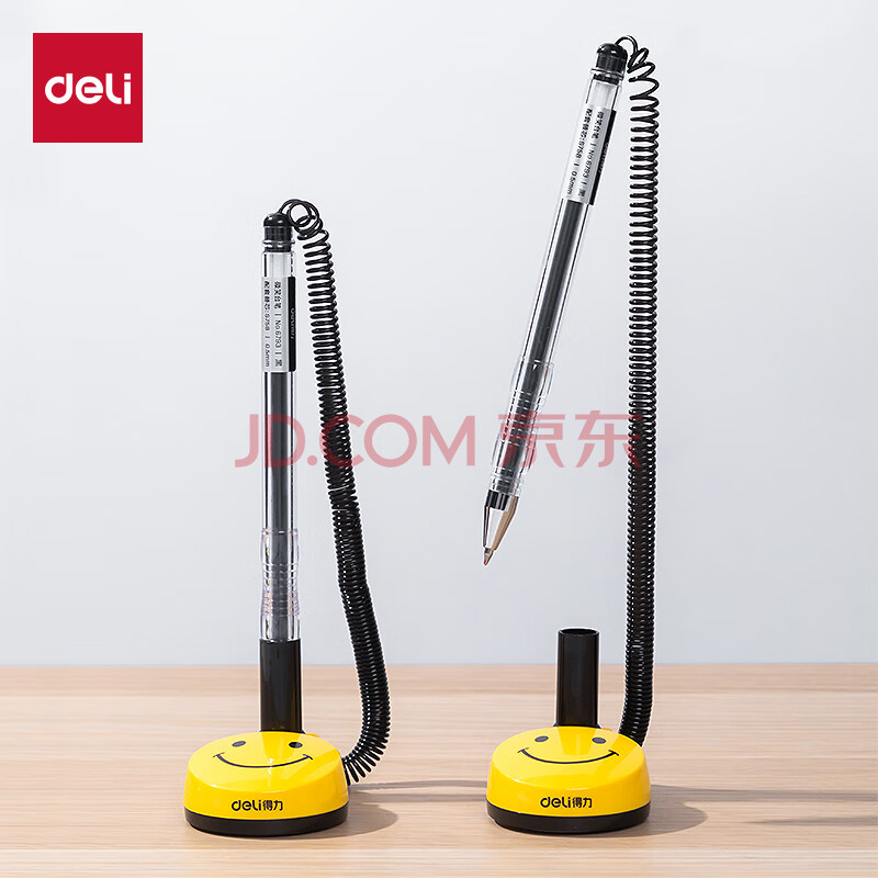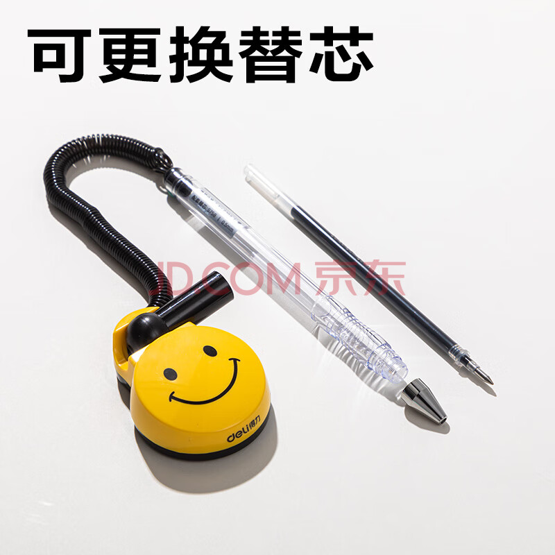 商品相册:得力(deli)黑色微笑办公桌面台笔 0.5mm子弹头可粘贴台式中性笔24支/盒6793第