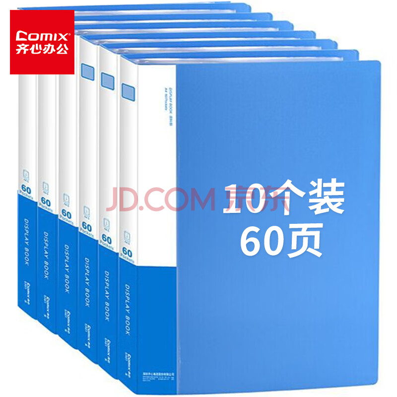 商品相册:齐心(COMIX)10只A4/60页资料册文件夹中小学生考试文件收纳册活页插袋办公用品EA61第