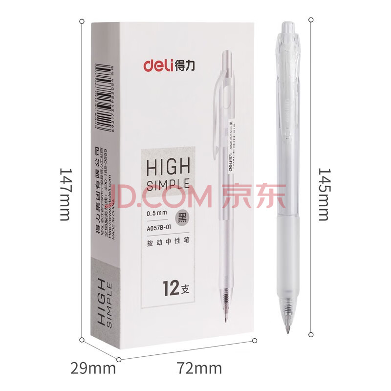 商品相册:得力(deli)【热门商品】按动中性笔无印风签字笔 学生办公笔 ins简约冷淡风 0.5mm子弹头 12支/盒第