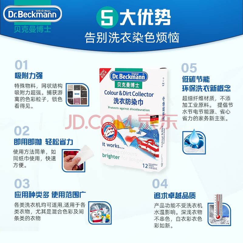 商品相册:贝克曼博士(Dr.Beckmann)洗衣防染巾12片装 防染色洗衣片吸色片衣物防串色母片 德国进口第