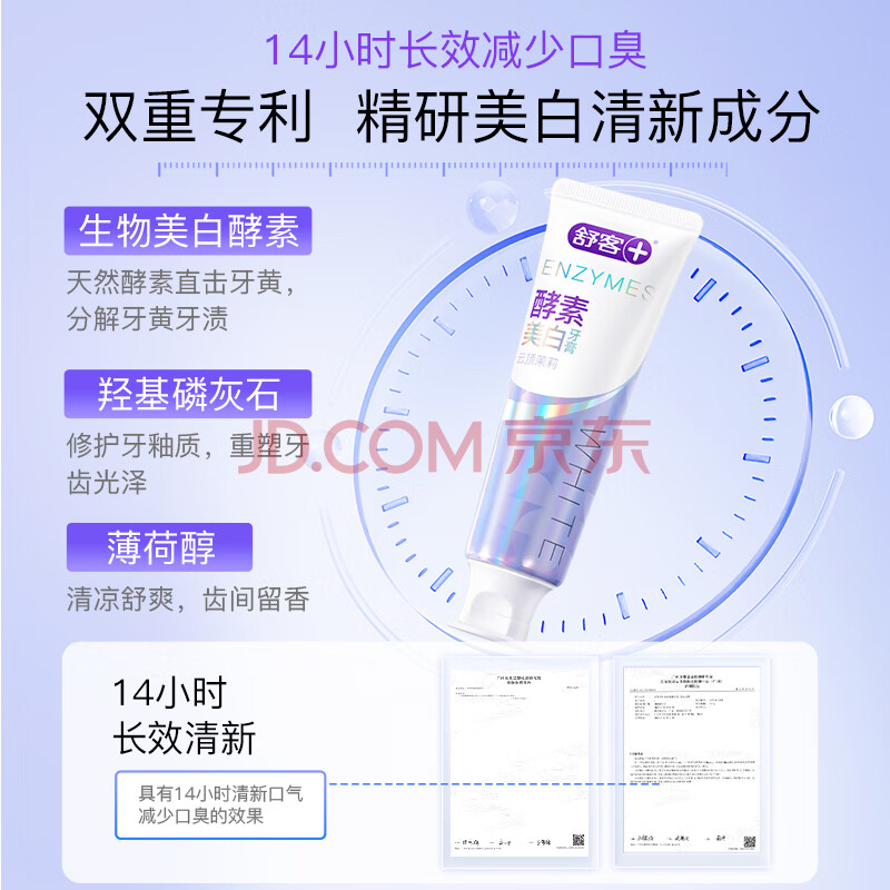 商品相册:舒客天然酵素牙膏 美白牙齿清新口气 3支共360g青柠香型新老随机发第