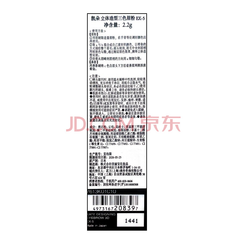 商品相册:凯朵(KATE)三色眉粉耐水耐汗鼻影画眉毛修容持妆生日礼物送女友EX-5 2.2g第