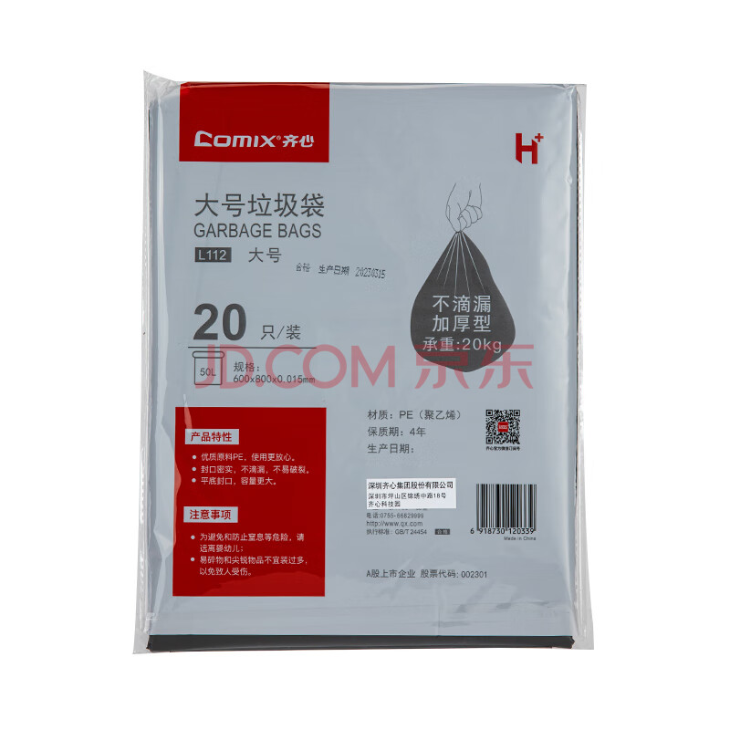 商品相册:齐心(COMIX)20只物业垃圾袋平口50只黑色60*80cm特大号增厚环卫餐饮物业袋办公用品 黑L112第