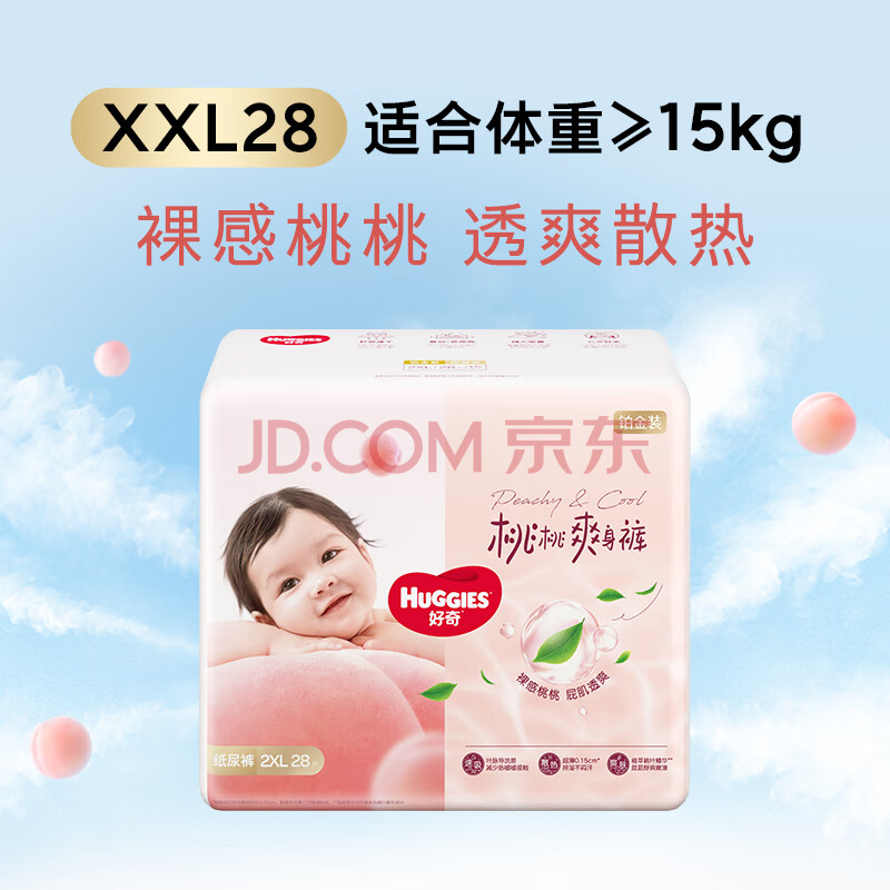 商品相册:好奇(Huggies)铂金装小桃裤纸尿裤XXL28片(15kg以上)尿不湿【透爽散热】第