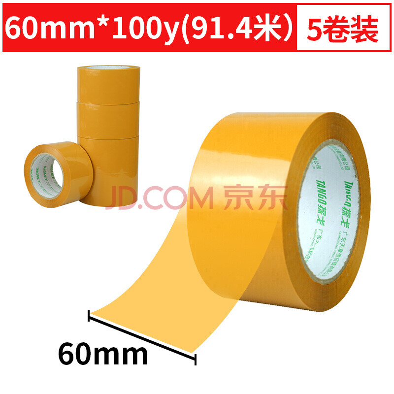 商品相册:天章 (TANGO) 新绿天章米黄色胶带60mm*100y(91.4米)*5卷宽胶带高粘打包封箱快递车间物流工厂胶布防台风 0324第
