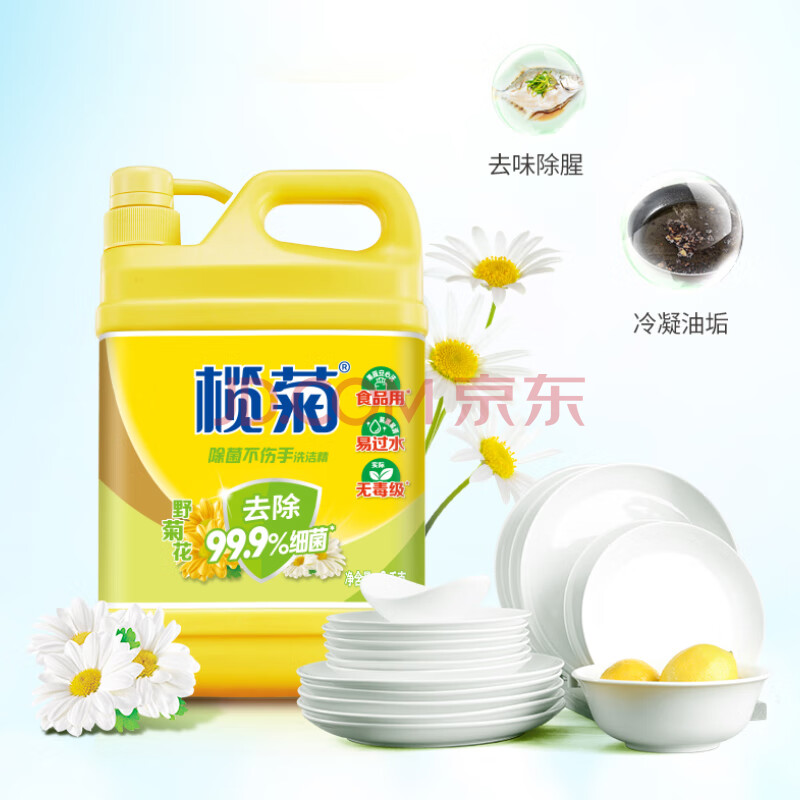 商品相册:榄菊除菌洗洁精2kg 野菊花香型家用去油污不伤手食品用级别洗涤灵第