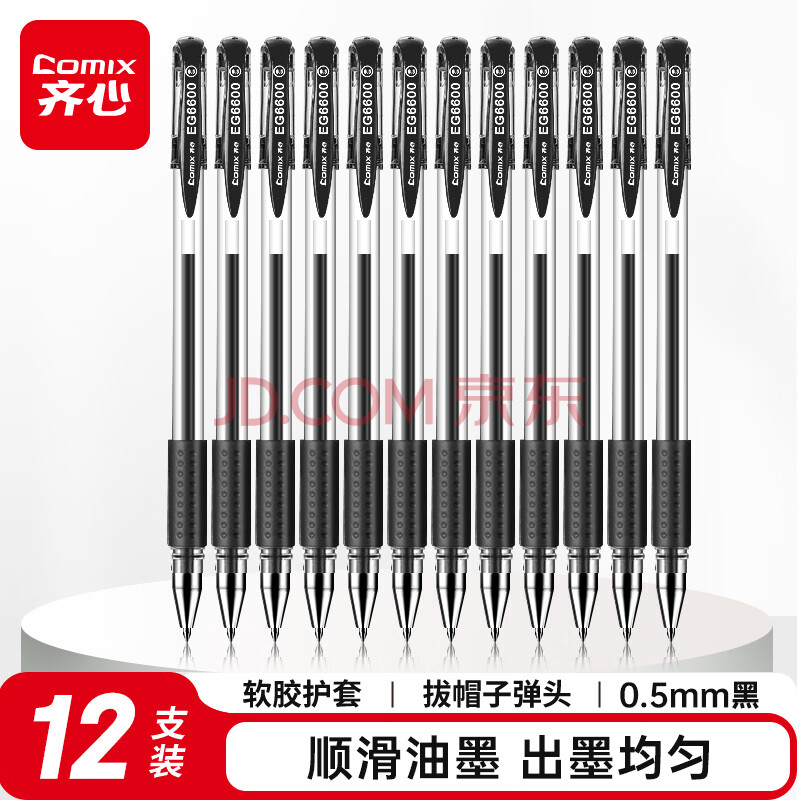 商品相册:齐心(Comix)【热门商品】经典办公子弹头拔帽中性笔/水笔/0.5mm会议签字笔12支/盒黑色 工具 EG6600第