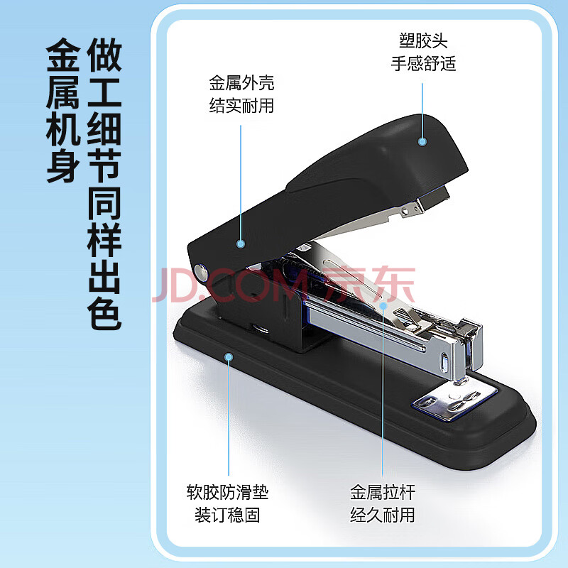 商品相册:齐心(COMIX)25页经典钢制耐用订书机/订书器 订书机大号适配12#订书钉24/6钉 办公用品 B3083黑色第