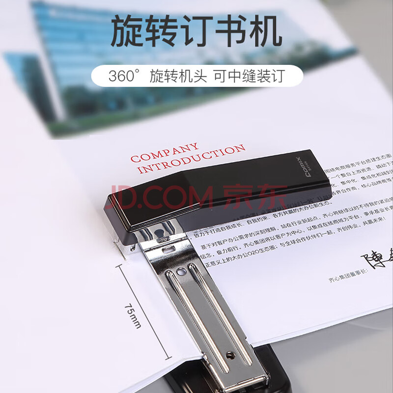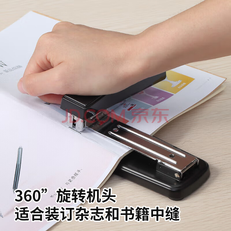 商品相册:齐心(COMIX)25页12#旋转订书机/订书器 可订中缝 适配24/6、26/6订书钉 办公用品 B414N黑色第