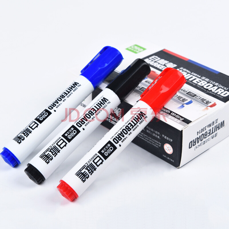 商品相册:递乐 可擦易擦白板笔水性笔办公文具用品黑蓝红色10支/盒 33014混色第