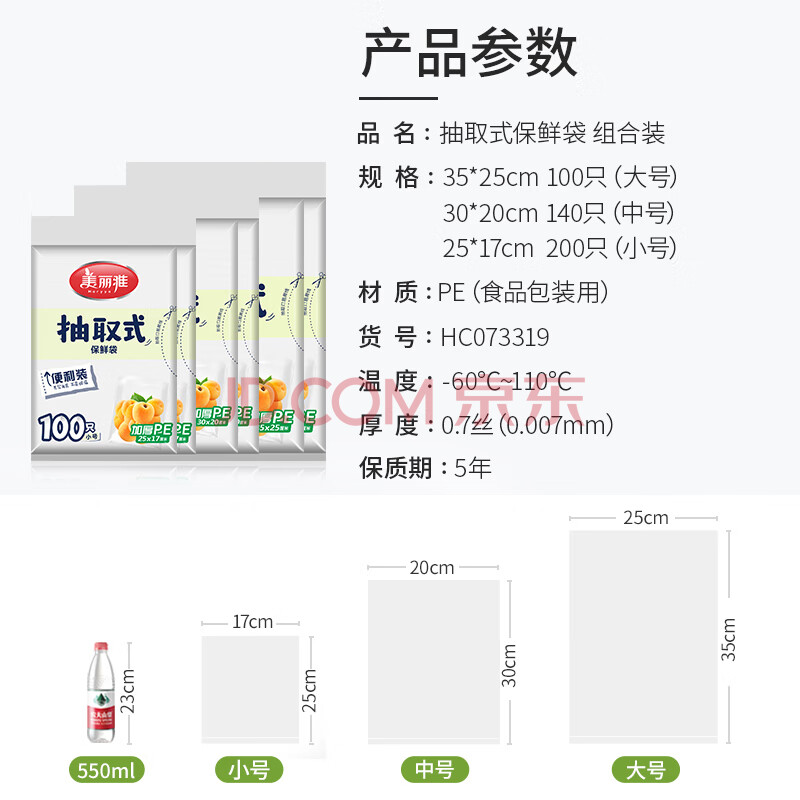 商品相册:美丽雅一次性保鲜袋食品用大中小号组合共440只 微波炉塑料袋加厚第