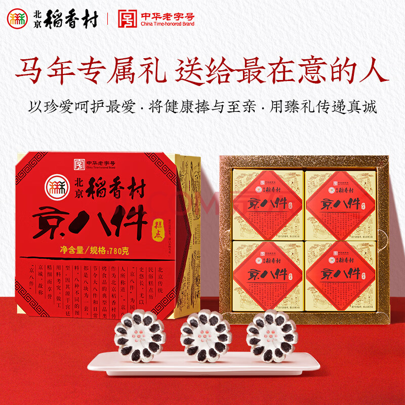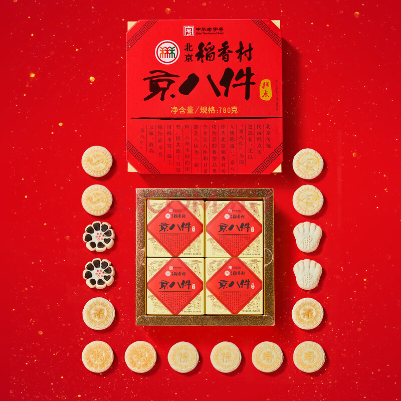 商品相册:北京稻香村旅游京八件礼盒780g 三禾糕点点心北京特产 节日送礼团购礼盒第