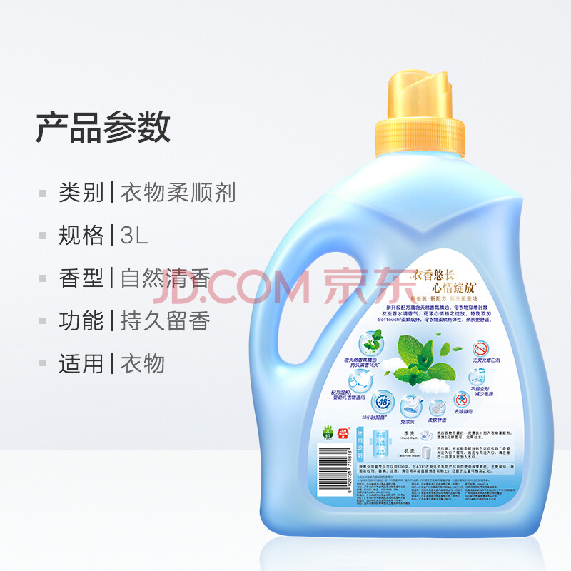 商品相册:AXE斧头牌衣物柔顺剂(自然清香) 3L 衣物柔软 清香持久第
